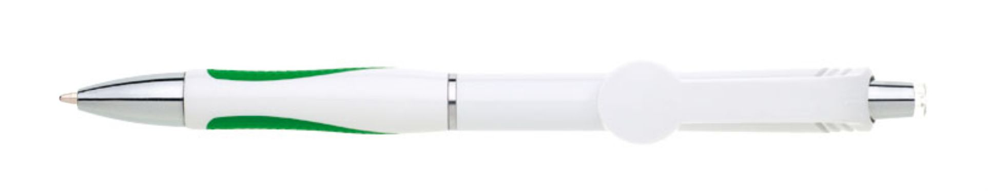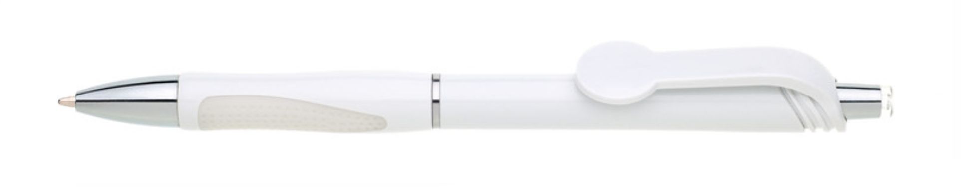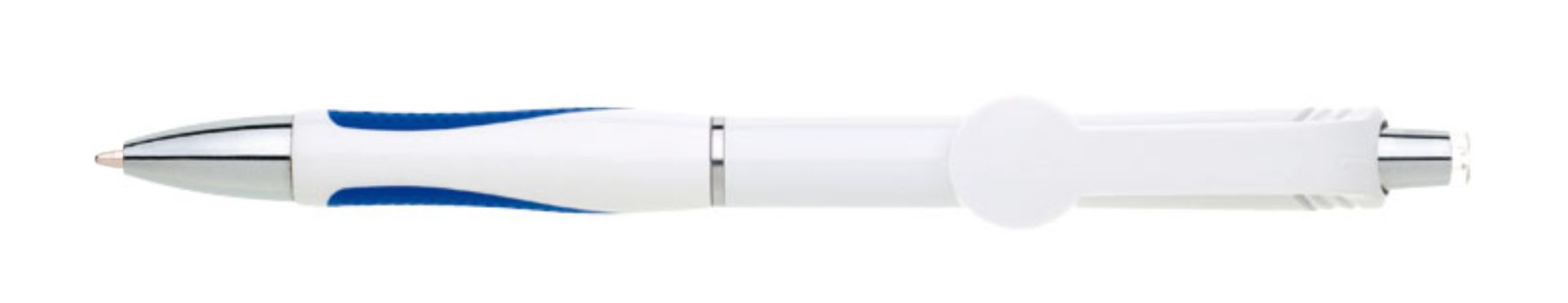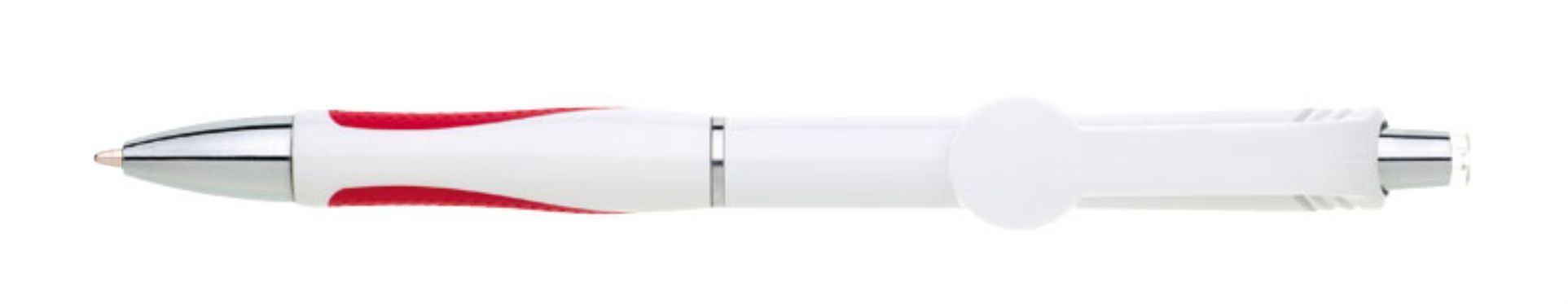 Varianta oblíbené propisky s rozšířeným klipem ve tvaru kola vhodným pro plnobarevný UV potisk. Gumový grip je v červené barvě. Značka GABRIELIS. Náplň X-20, hrot 1 mm, modře píšící.