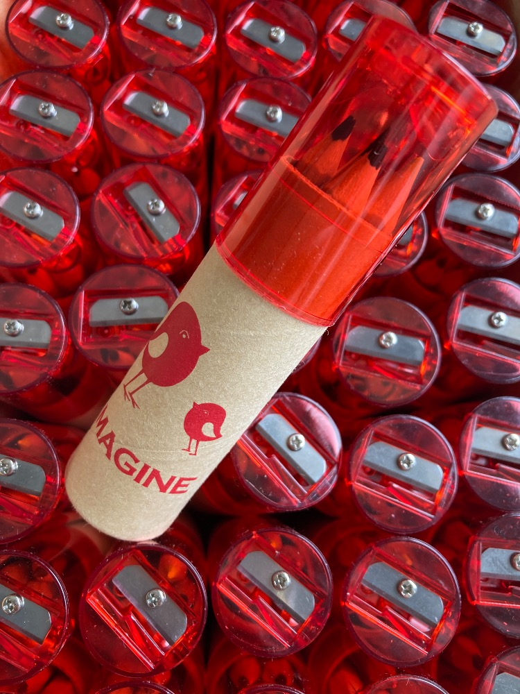 MAGINE 6* pastelky krátké s ořezávátkem červená s potiskem