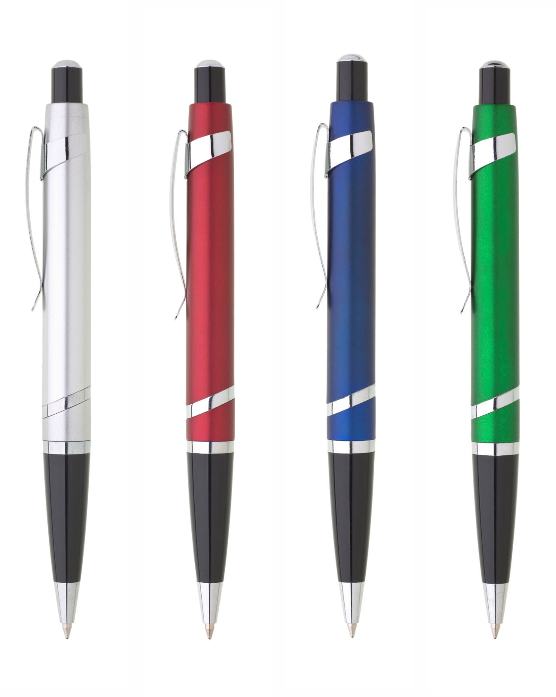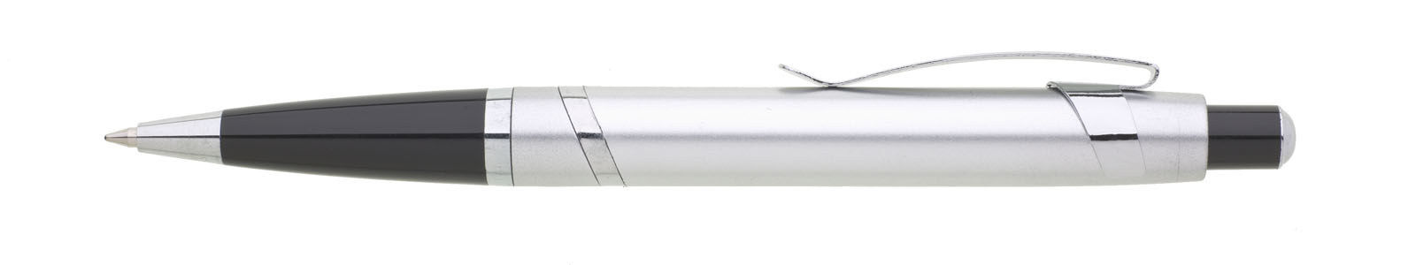 Stříbrné tělo je doplněno černou špičkou a originálními chromovými doplňky. Náplň gelová velkoobsahová, modře píšící.