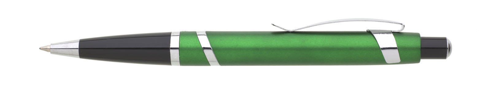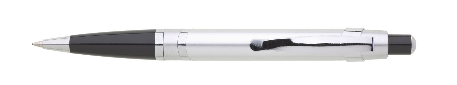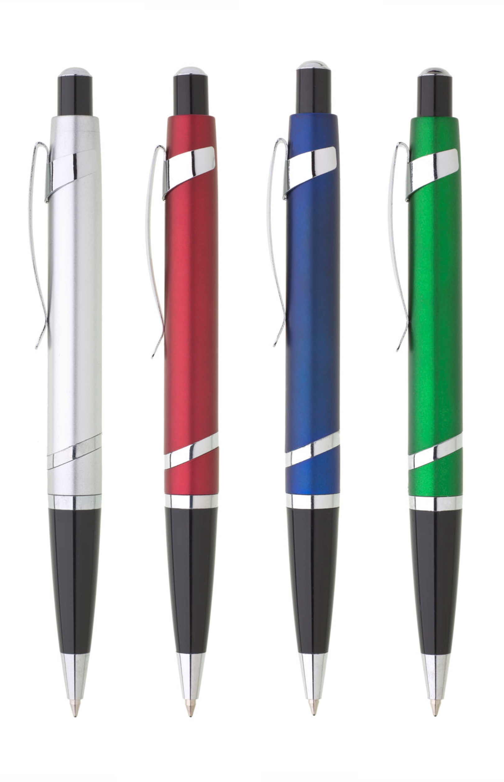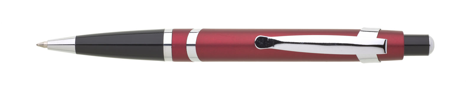 Tmavě červené tělo je doplněno černou špičkou a originálními chromovými doplňky. Náplň velkoobsahová, modře píšící.