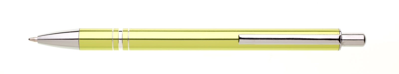 Kuličkové pero RENZA NEW s novým klipem je vyrobeno z hliníku, je ve světle zelené barvě, na úchopové části má 3 stříbrné proužky. Tužka má pochromované doplňky jako jsou špička, klip a cvakátko. Náplň X 20 – 10,7 cm, modře píšící.
