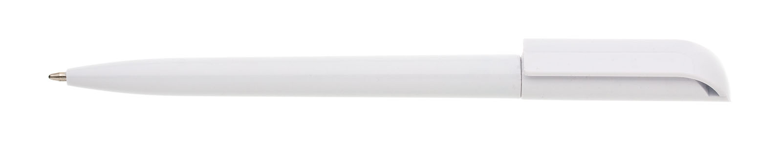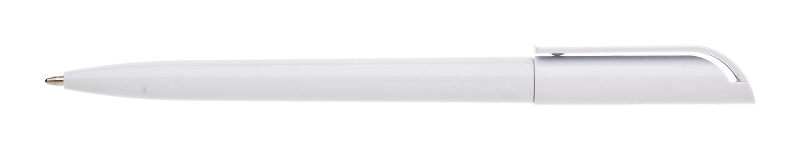 Plastové, kuličkové pero Rotate v bílé barvě se širokým, krátkým klipem a otočným mechanismem.